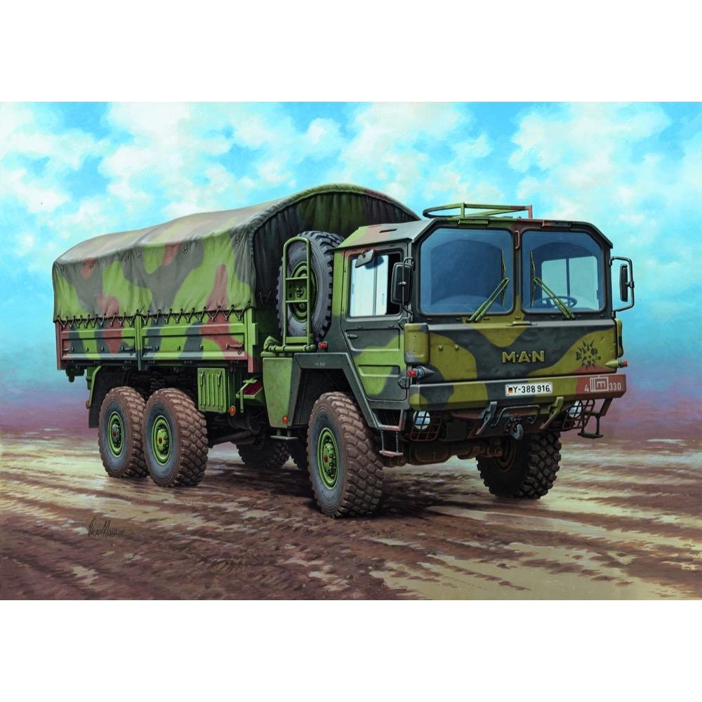 Model kit of the MAN 7t Milgl. This is used by the Bundeswehr to supply the troops with material, even in difficult terrain. Due to its 6x6 all-wheel drive and the highly flexible axles, it is ideally suited for this difficult task and is rightly considered one of the best trucks in its class worldwide.