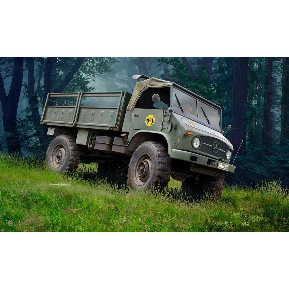 Model kit of the powerful Unimog 404 S. A four-wheel drive vehicle produced in the 1950s. It was known for its versatility and reliability and was used in many areas, including agriculture, forestry and the military.