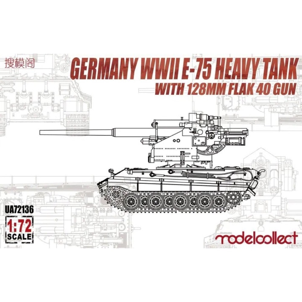 Modelcollect UA72136 1/72 German WWII E-75 Heavy Tank with 128mm Flak 40 Gun