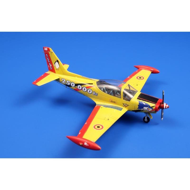 The Italian SF-260 trainer, aerobatic and light sports aircraft is used world wide. In Europe, it has been operated by the Italian and Belgian air forces as well as by the Irish Air Corps. The model is laid out to five styrene sprues including a clear one with the early, no so bulged canopy hood. Colour schemes and decals for Italian, Belgian and Irish M, AM and W version machines are provided. Later machines of so-called second generation known as the SF-260EA/D with larger canopy hood are in the making now too and will be offered in another boxing. The decal sheet bring markings for a Belgian anniversary machine, an Italian of similar significance and for one standard Irish SF-260, which on the other hand can boost with some underwing armament carried on two pylons.