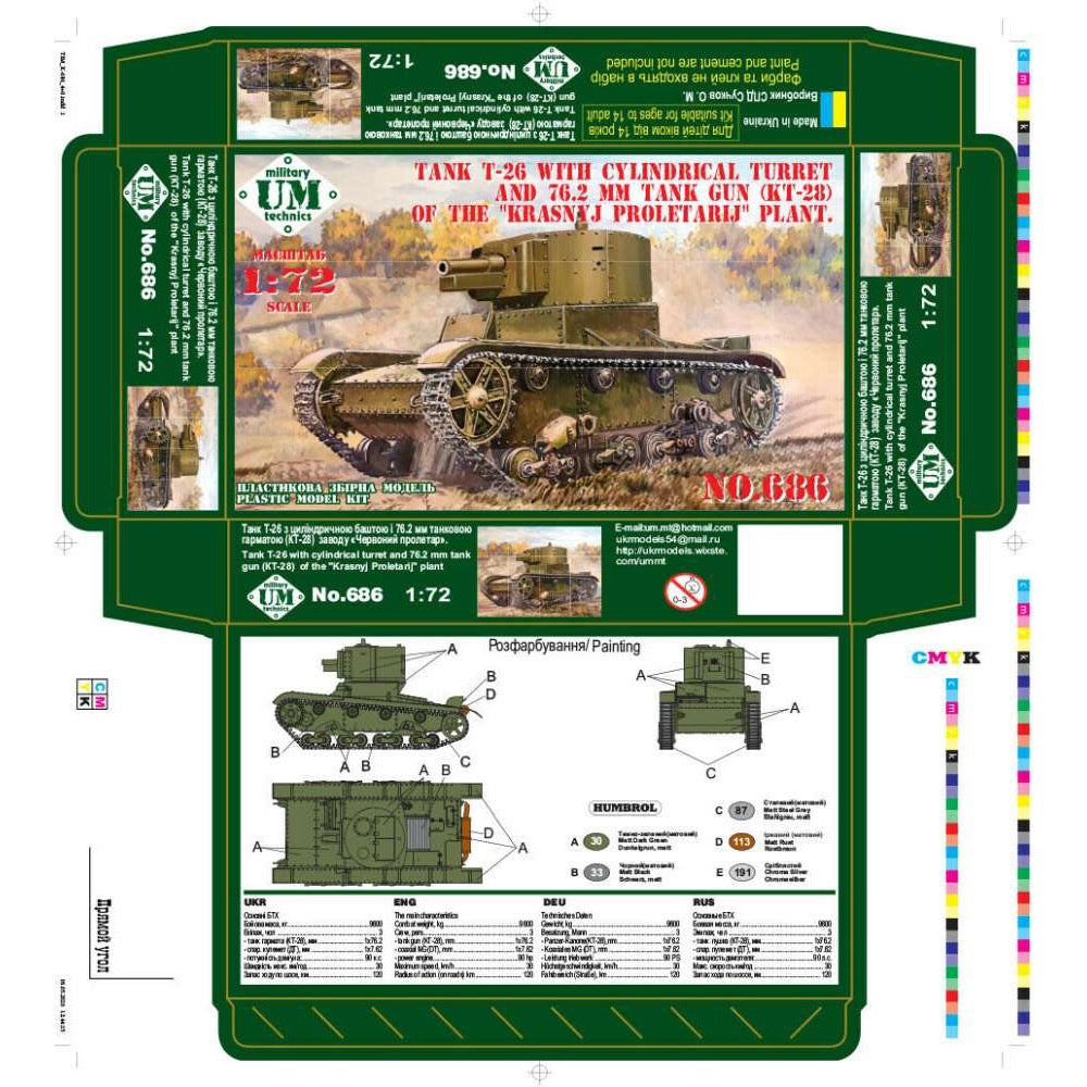 UM Military Tactics 686 1/72 T-26 Tank with Cylindrical Turret and 76.2mm Tunk Gun (KT-28)