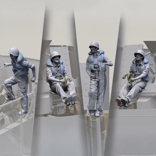 US NAVY 40MM QUAD BOFORS anti-aircraft gun crew with life jackets set 1J 1:35