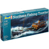 From Newfoundland to Norway, the European fishing fleet is in action around the clock every day, battling the elements and the unforgiving seas. On a three-week fishing trip, the trawler devotes only about one week to fishing, with the remaining two weeks needed for travel to and from the fishing grounds. The equipment of these trawlers includes electronic equipment such as navigational aids, echo sonar, and an automatic fish school reporting system that indicates the density of fish occurrences. Trawlers of this type tow their trawls on the right side (starboard side). The crew is 19 men.
