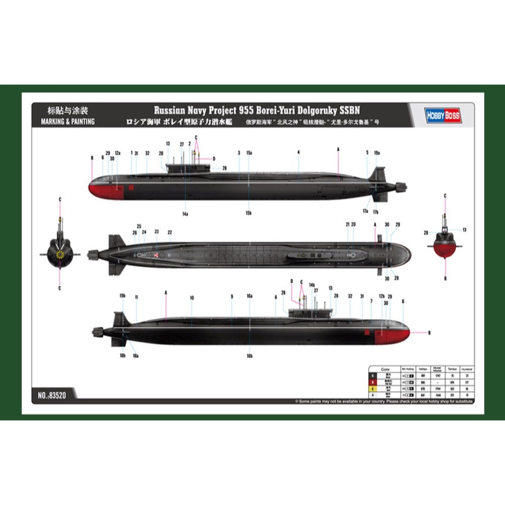 Hobby Boss 83520 1/350 Russian Navy Project 955 Borel-Yuri SSBN