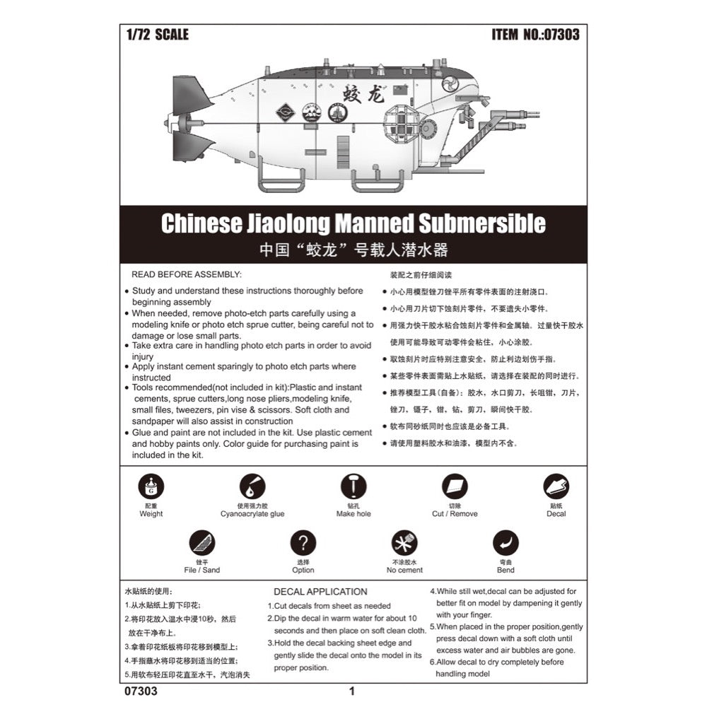 Trumpeter 07303 1/72 Chinese Jiaolong Manned Submersible