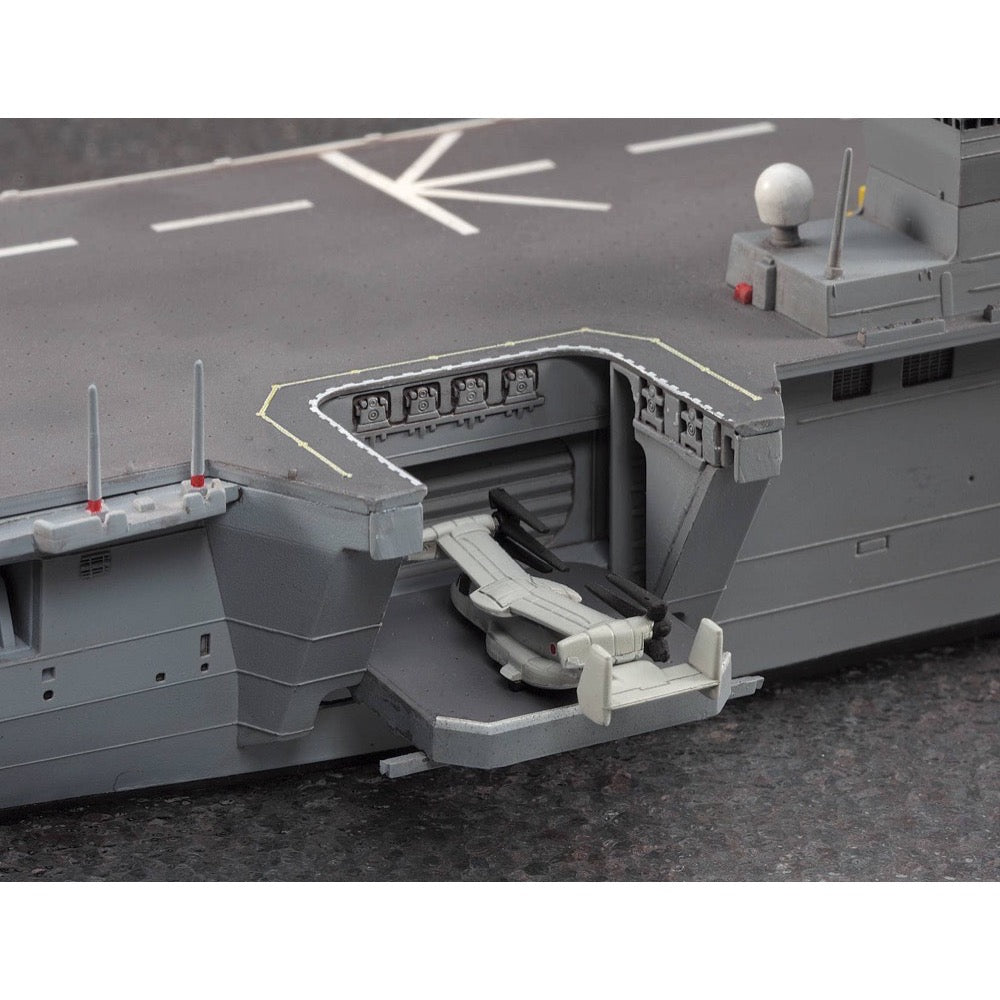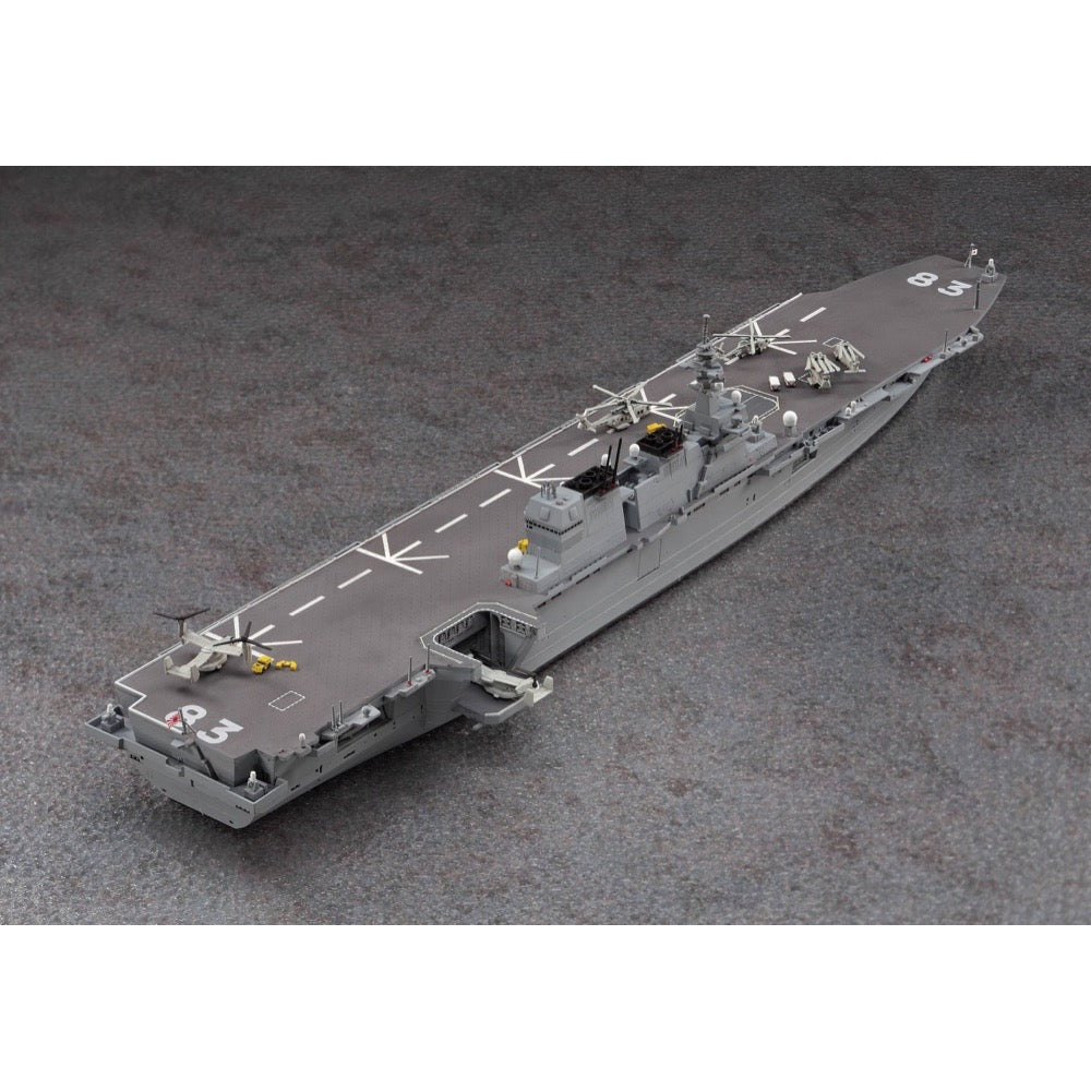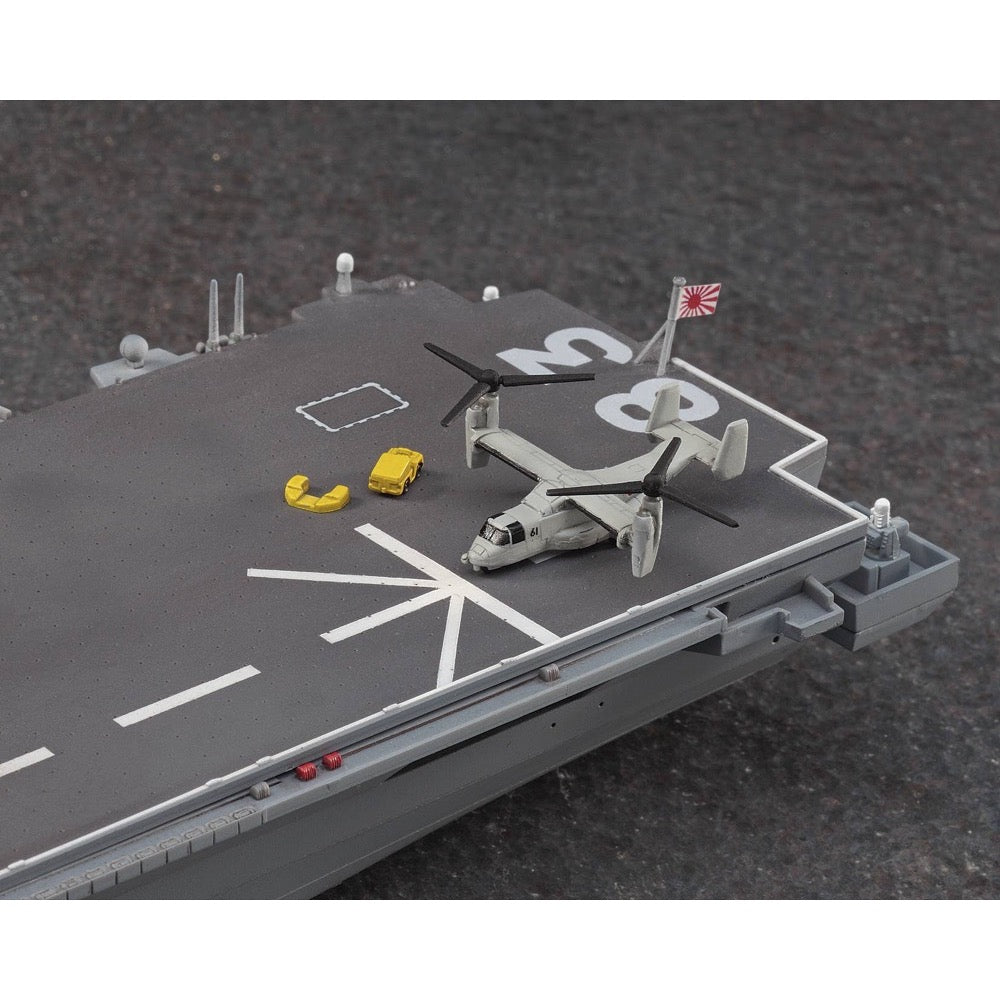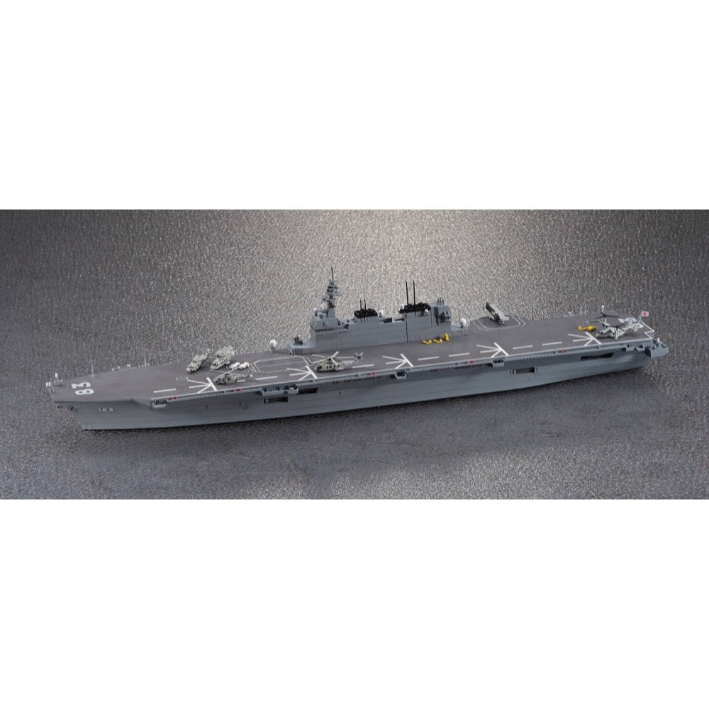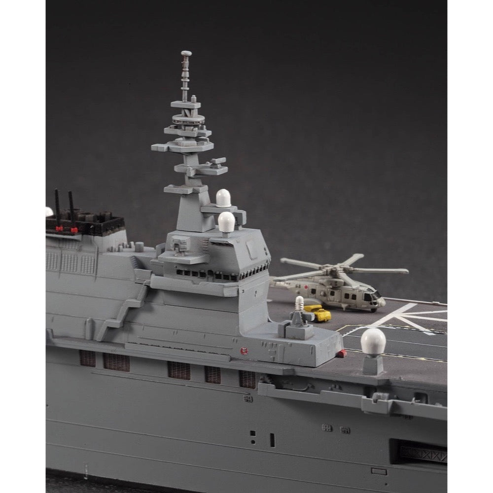 An aircraft carrier in virtually all but name, the DDH Izumo "Helicopter Destroyer" can carry up to 28 aircraft and is the largest vessel launched by Japan since the end of WWII. This vessel, and the vessels to follow it in this class, are specialized for anti-submarine warfare, search and rescue and, potentially, amphibious assault. They are also capable of launching short takeoff and landing aircraft. Kit features aircraft and vehicle parts.