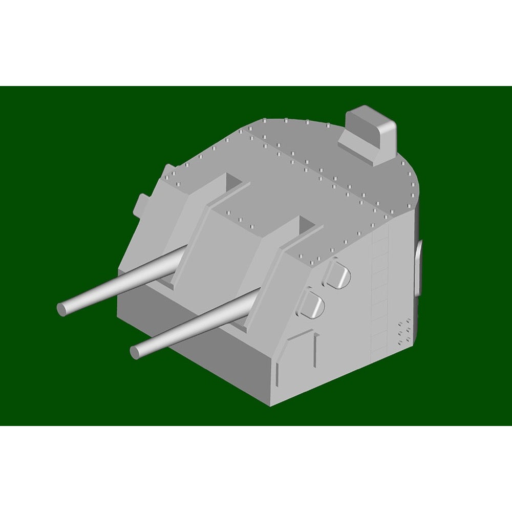 Six US Navy Alaska Class large cruisers (CB) were planned before the Second World War. ALASKA CB-1 (kit ref PKTM06738) and GUAM CB-2 (PKTM06739) were commissioned in 1944. HAWAII CB-3 was launched after the war in late 1945 but by early 1947 was only 82% complete. Plans to convert HAWAII to a guided missile cruiser, or aircraft carrier, or large command ship were all shelved. The fitted turrets had already been removed when in 1959 the incomplete HAWAII was sold for scrap.