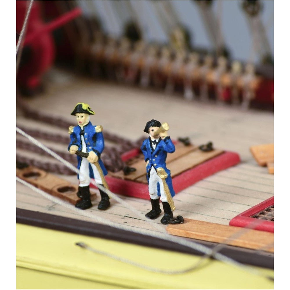 Once built, this faithful miniature replica measures 587 mm long, 282 mm wide and 677 mm high. Complete your wooden model of this beautiful ship by obtaining the best finishes for your HMS Supply in 1/50 scale by painting it with the Specific Paint Pack for the HMS Supply Armed Brig (277PACK7), sold separately.