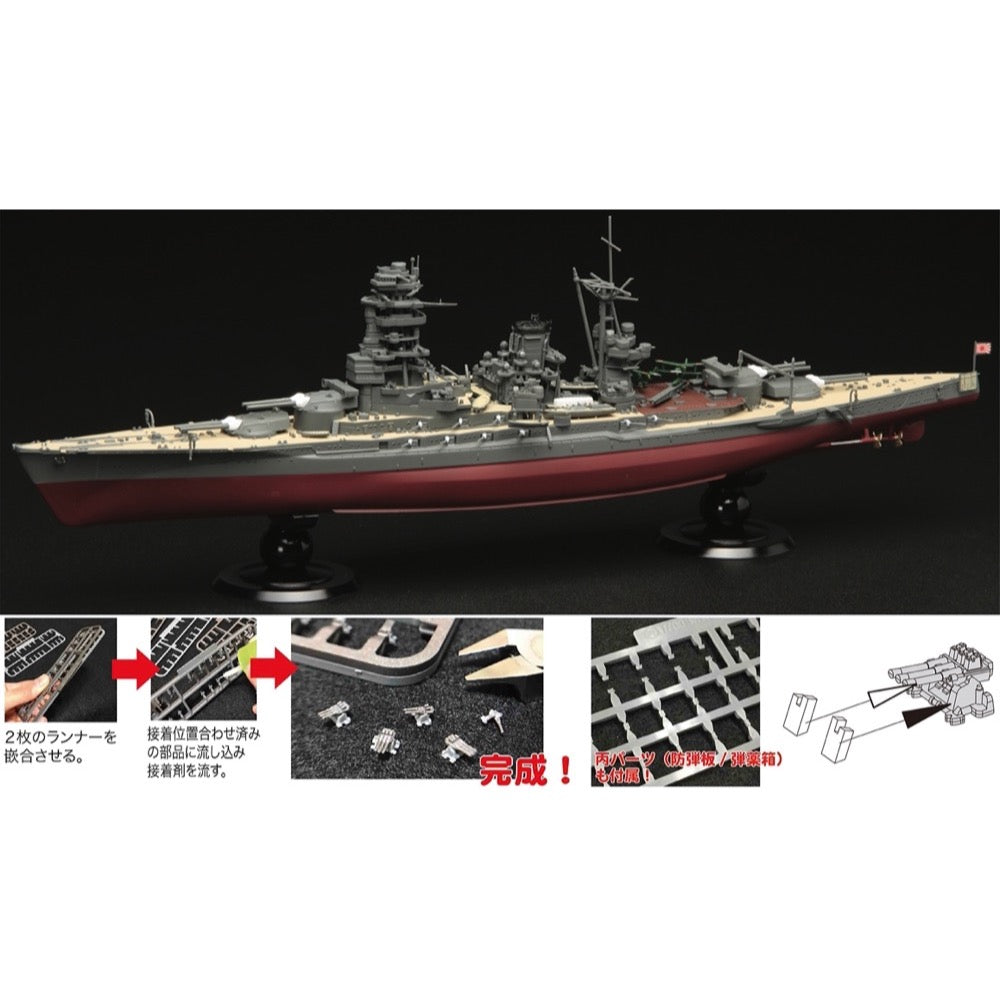 This model kit of the Japanese Navy battleship Nagato is a full-hull version, and reproduces her appearance at the beginning of the Pacific War.