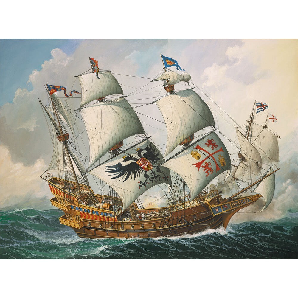 Immerse yourself in the fascinating world of historic seafaring with this detailed model kit of the Spanish Galleon. The kit combines historical authenticity with high-quality model building and offers you the opportunity to recreate a piece of maritime history.