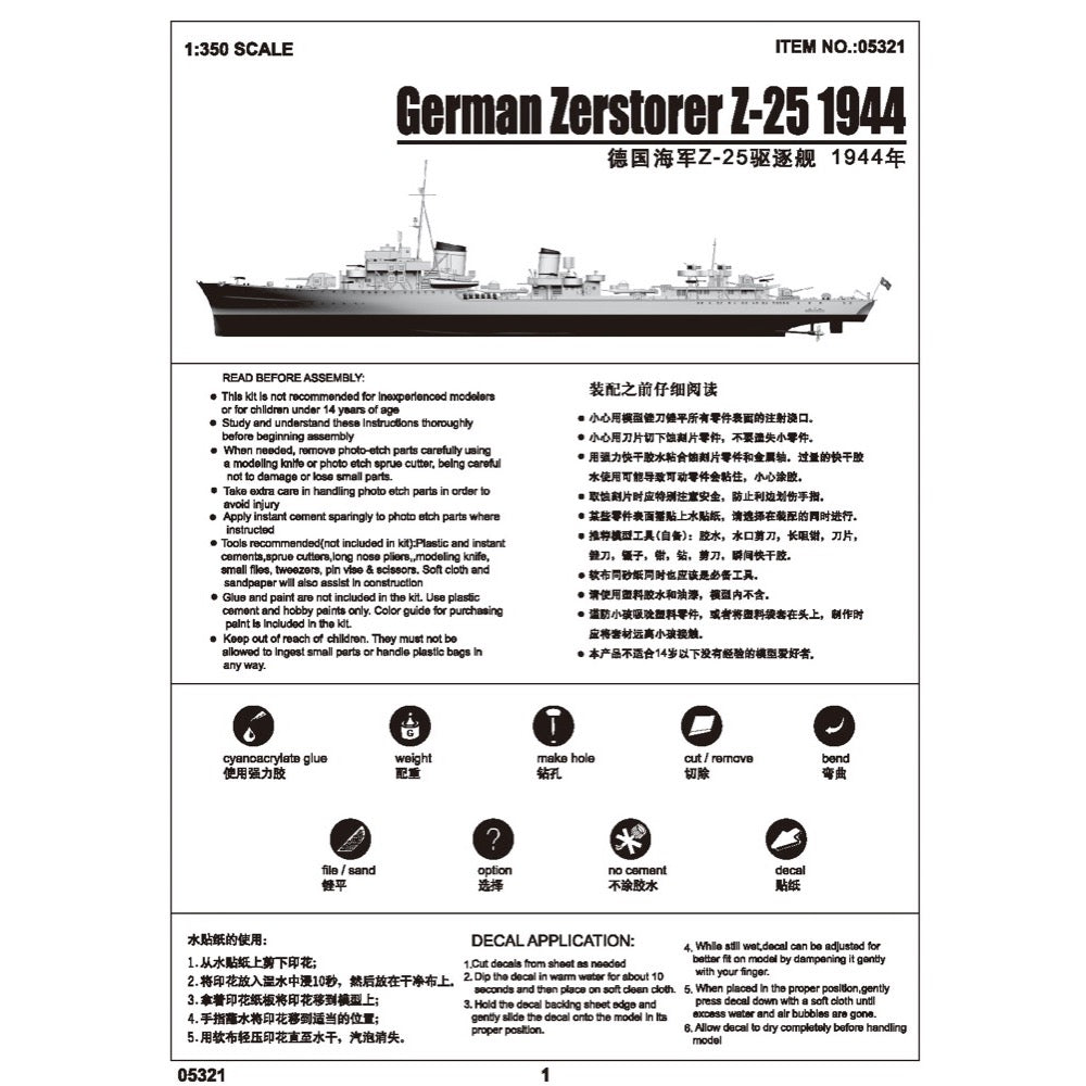 Trumpeter 05321 1/350 German Zerstorer Z-25 1944