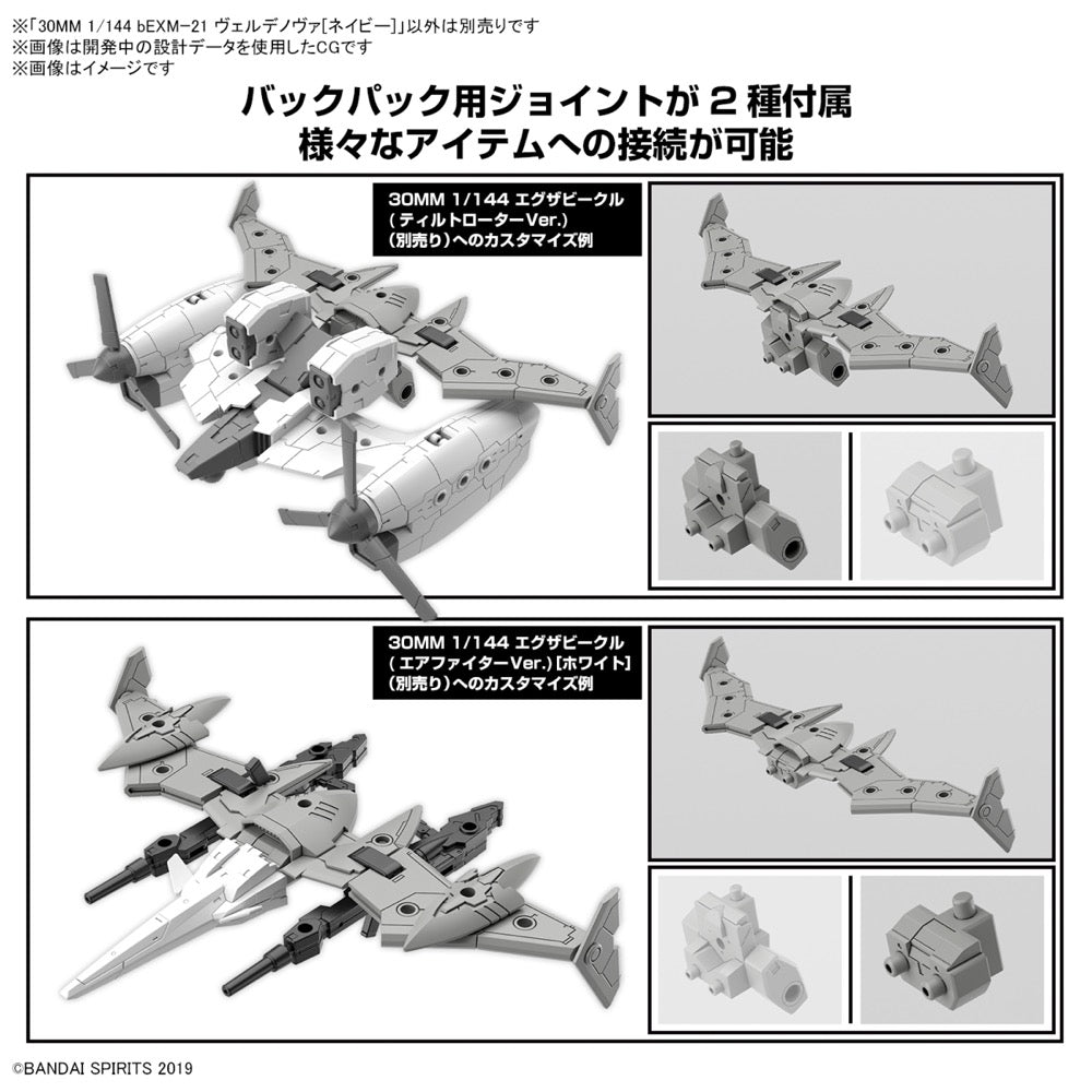 • The backpack and chest part can be separated and used as a flight unit, and two types of backpack joints are included to connect it to various items.