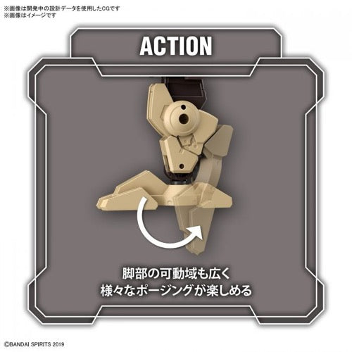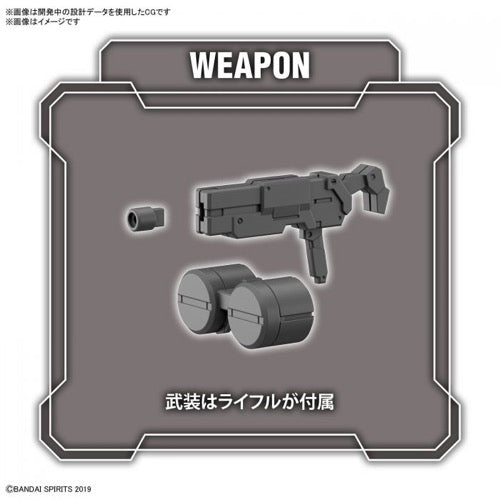 The Gard Nova features an armored chest and a long movable arm; it also has movable armor on the front of its waist. It can be changed to the middle-arm form by attaching and detaching parts; the range of motion of its legs is wide for lots of great poses! Combine it with the Rever Nova (sold separately) to make it even more impressive! Like many 30MM items, it can also be customized to your heart's content. Includes rifle!