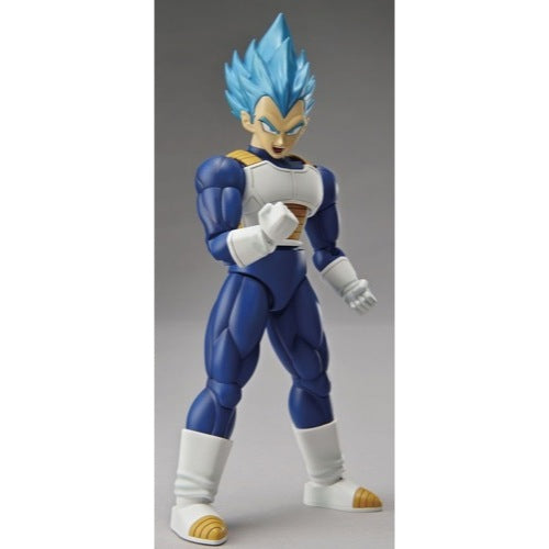Super Saiyan God Super Saiyan Vegeta from "Dragon Ball Super" is back as a Figure-rise model kit with a renewed package! The signature blue hair of this Saiyan form is created with metallic blue plastic. Two expression parts -- normal and shouting -- are included, as well as effect parts to create two of Vegeta's attacks!