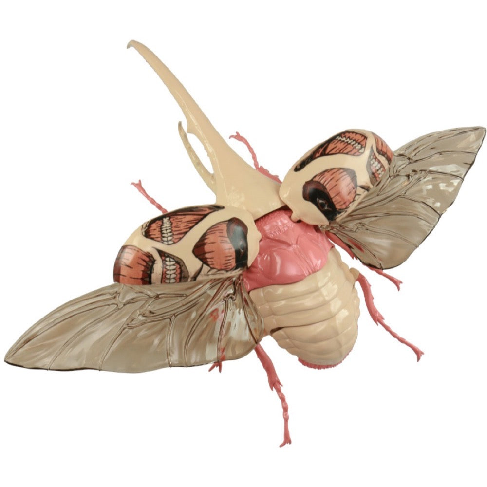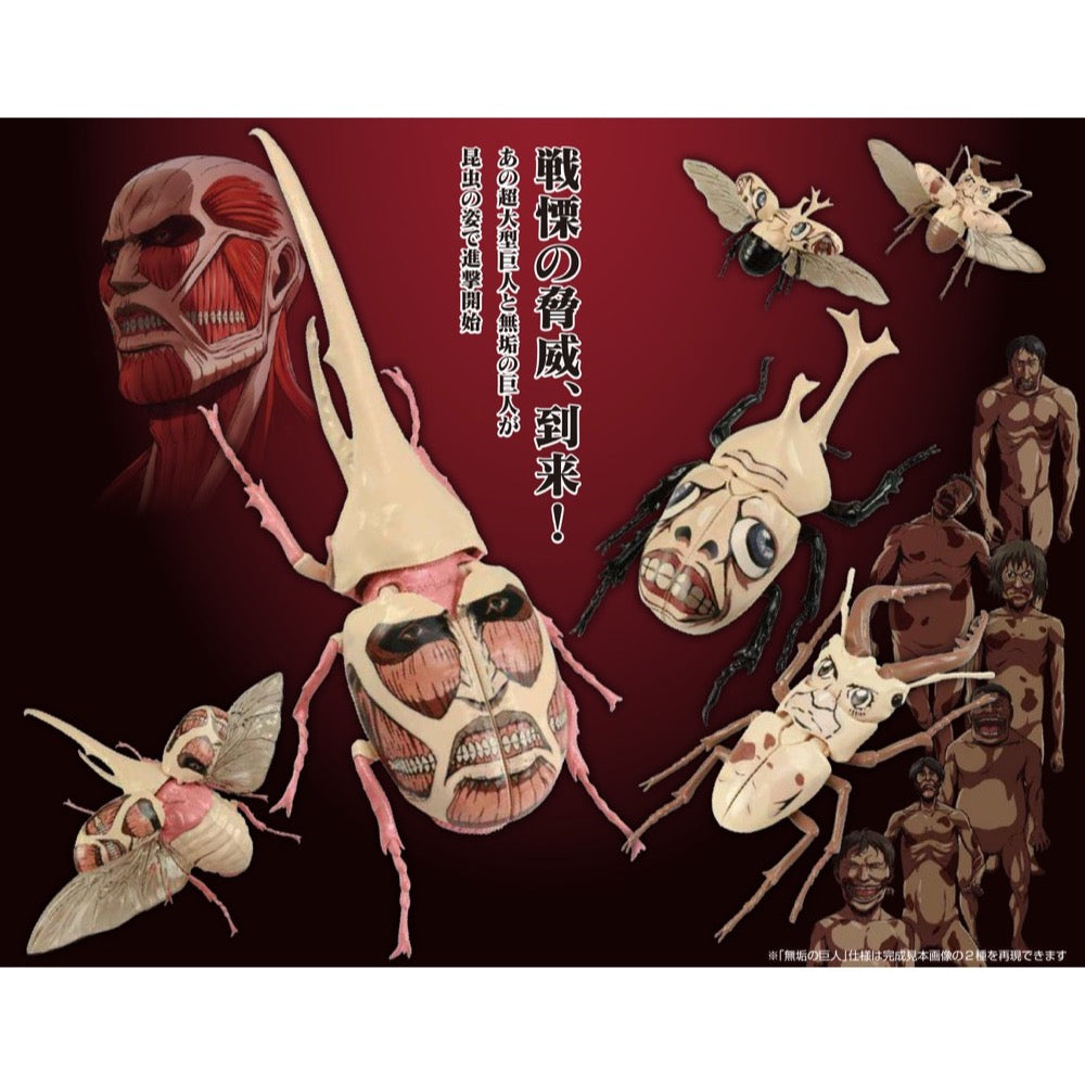 Fujimi's Hercules beetle model kit is now available in colors evoking the Colossal Titan from "Attack on Titan"! The Colossal Titan's eerie face is reproduced with stickers that are applied to the precision-molded and highly realistic model; it assembles easily with no adhesive or tools required. The main parts such as the horns, legs, and chest are all movable so it can be displayed in a variety of poses, and the beetle can be displayed preparing for flight with parts replacement.