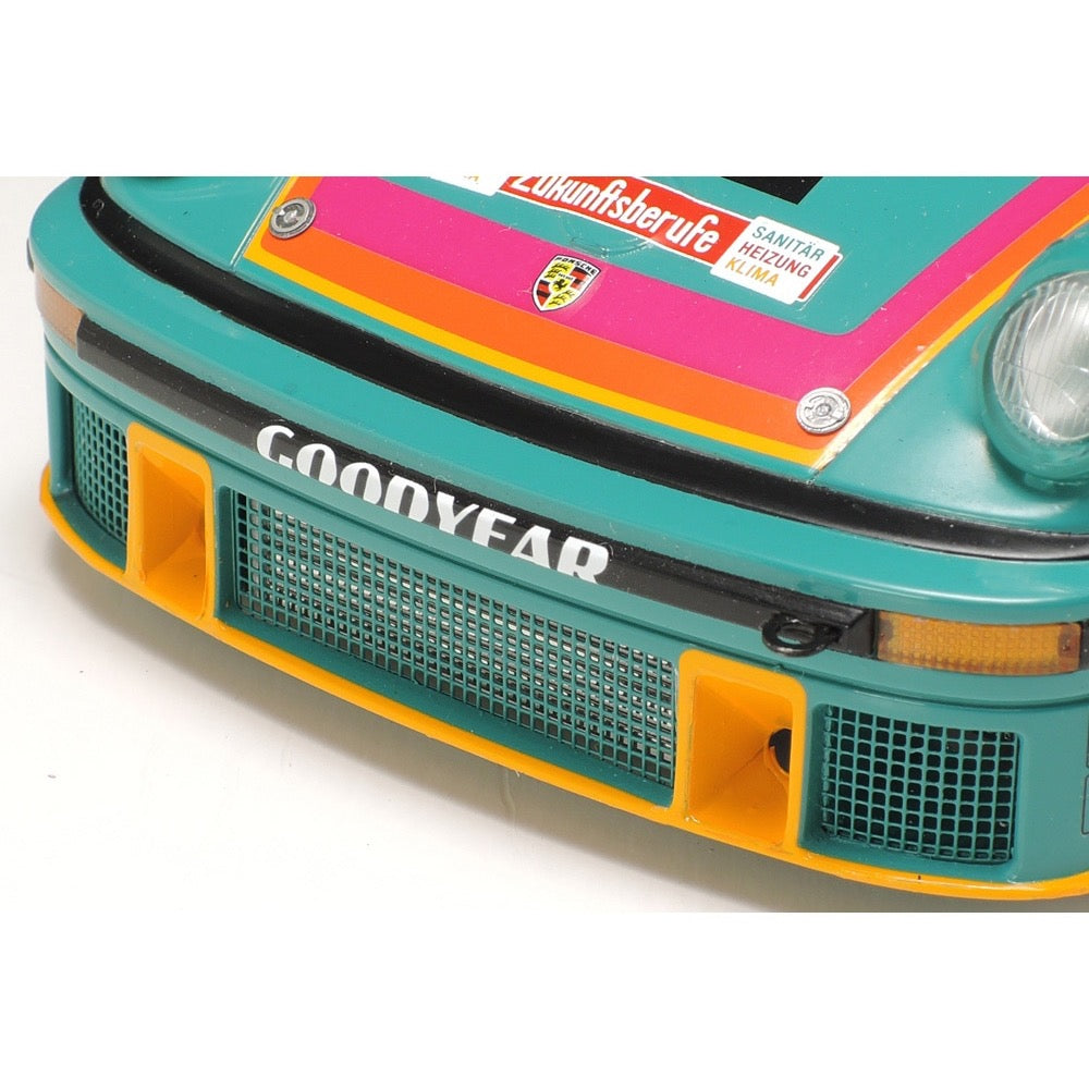 This is a model replica of the Porsche 934 Turbo RSR, in Vaillant livery. Based on the Porsche 930 Turbo, the Turbo RSR Type 934 was developed to compete in international sports car racing in 1976, and 31 race cars were produced. In the same year, a 934 with the German company Vaillant as the main sponsor and a striking cobalt green livery competed in the DRM (German Racing Championship). It had an excellent racing season, taking the checkered flag first in the 2nd, 4th and 10th races and leaving French driver Bob Wollek atop the Division 1 drivers standings leader board come the end of the years racing.