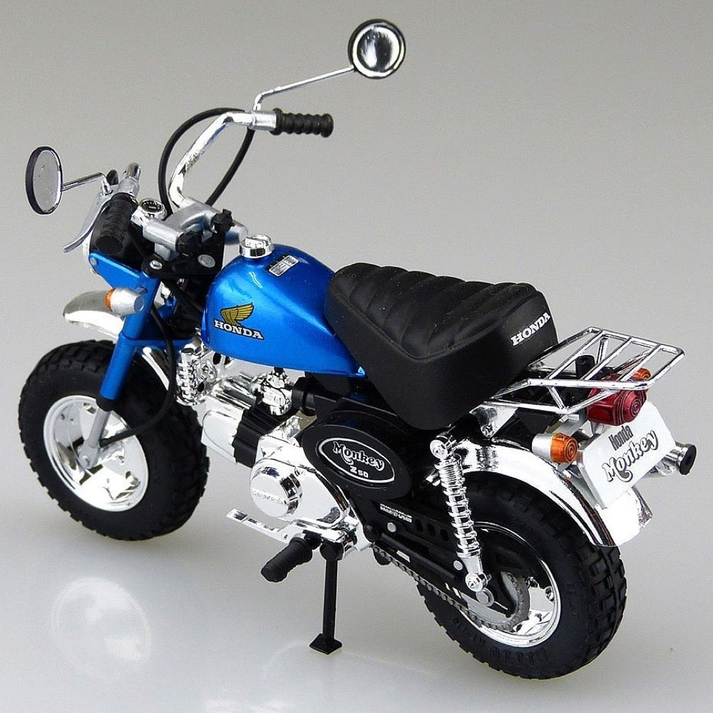 This kit from Aoshima features the 1978 Honda Z50J Monkey in custom specifications! Rubber tires with a realistic texture are included; the wiring is reproduced with vinyl piping.
