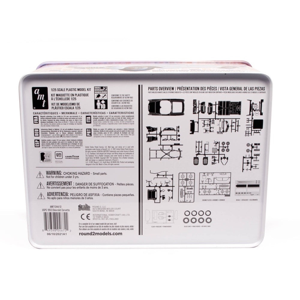 CLASSIC AMERICAN ICONS: This kit is the third in the Auto Art Stamp Series from AMT that brings together two of America’s most notable brands with the first edition all-American sports car Chevrolet Corvette portrayed in United States Postal Service stamp artwork on this commemorative collectible tin.