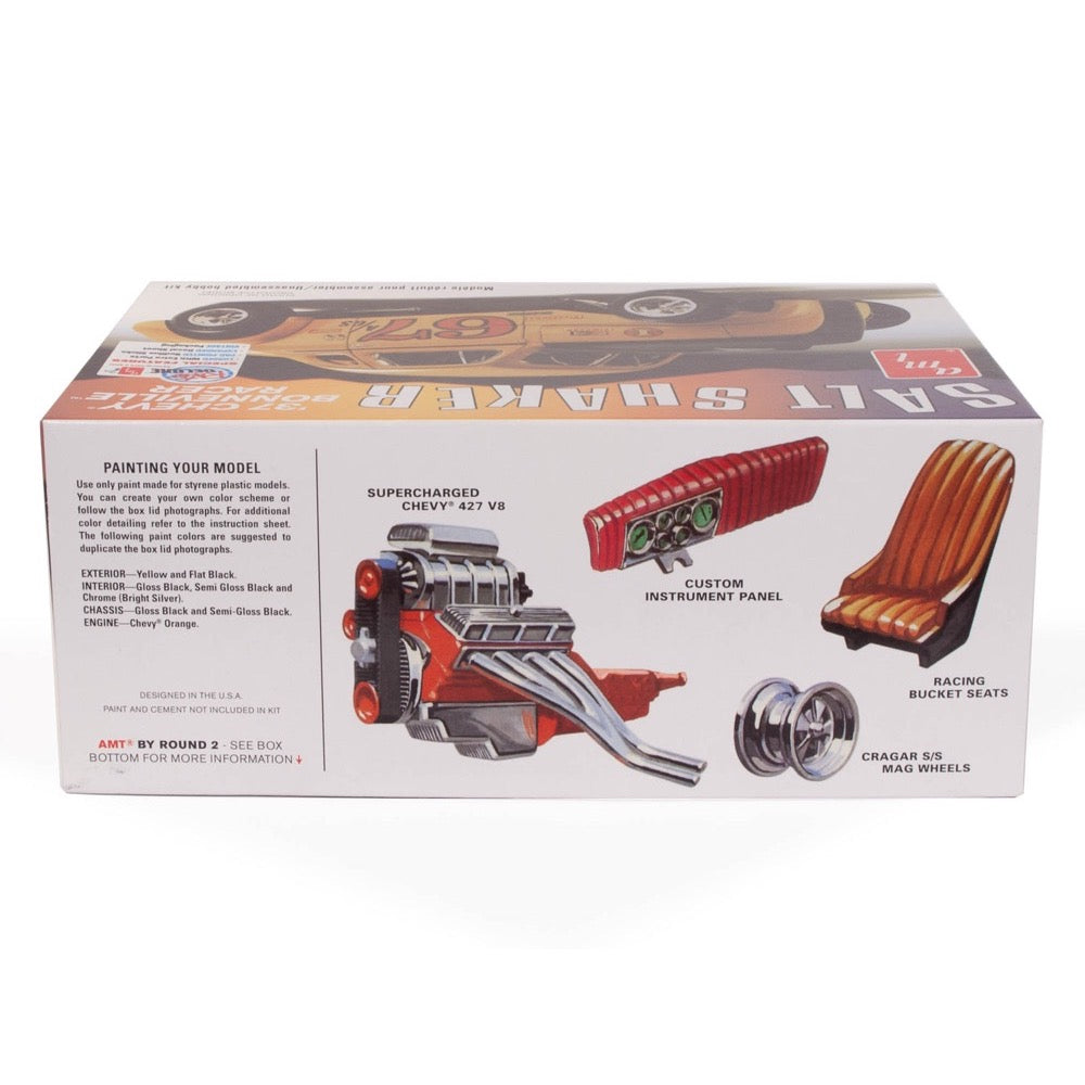 LOADED WITH PARTS: The Salt Shaker is a classic salt flats racer. Fully paintable, it features an EXPANDED, authentically detailed water-slide decal sheet that is full of colorful options. Build this classic racer with plenty of parts to choose from, including chrome mag wheels, pad printed red line slicks, roll bar, racing suspension, a supercharged Chevy 427 engine, custom instrument panel, racing bucket seats, and more. Wrapped up nicely in replicated vintage packaging!