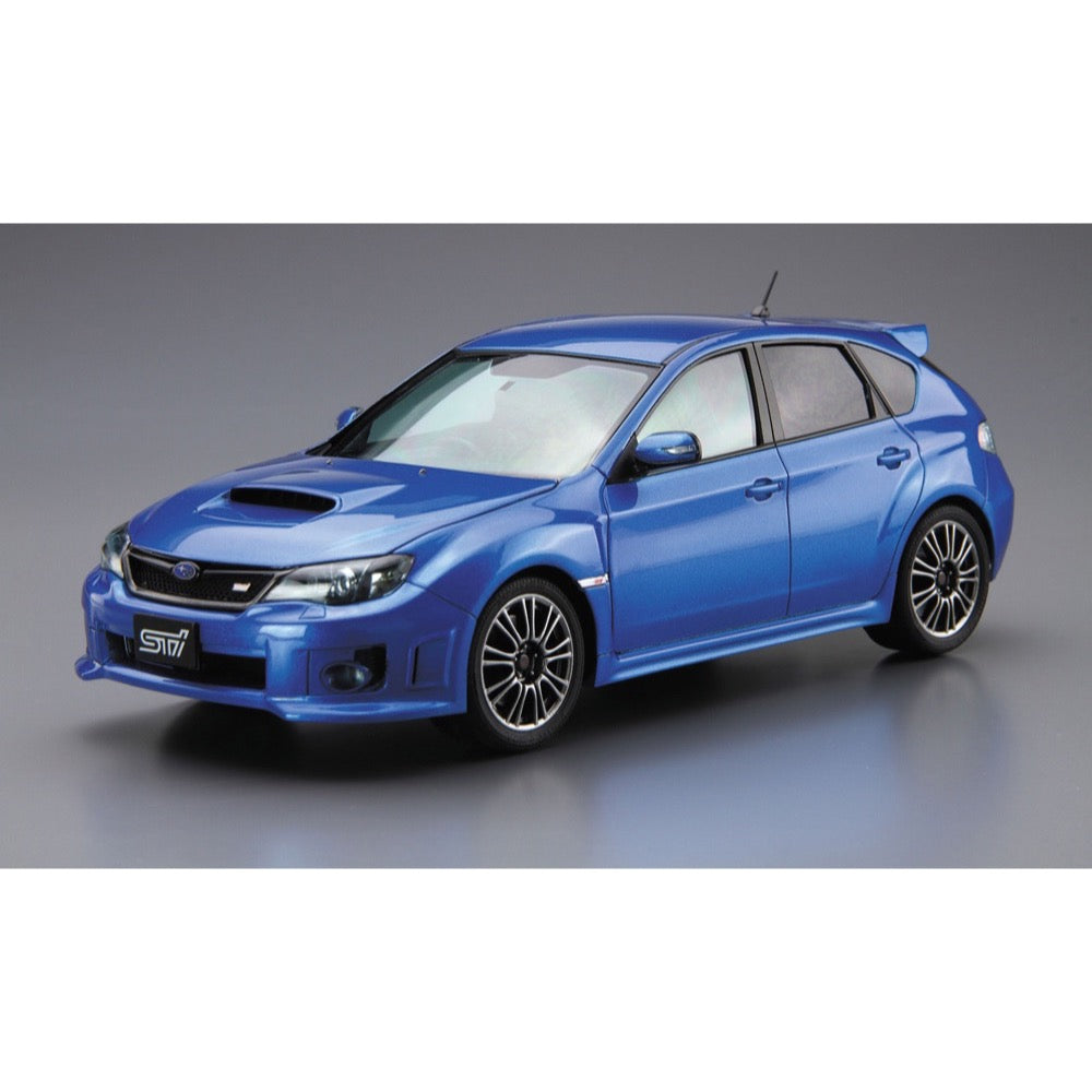 This assembly-style plastic model kit faithfully reproduces the catalog version of the GRB WRX STI and includes parts for both the early '07 model and the later '10 model, allowing builders to choose between them during assembly.