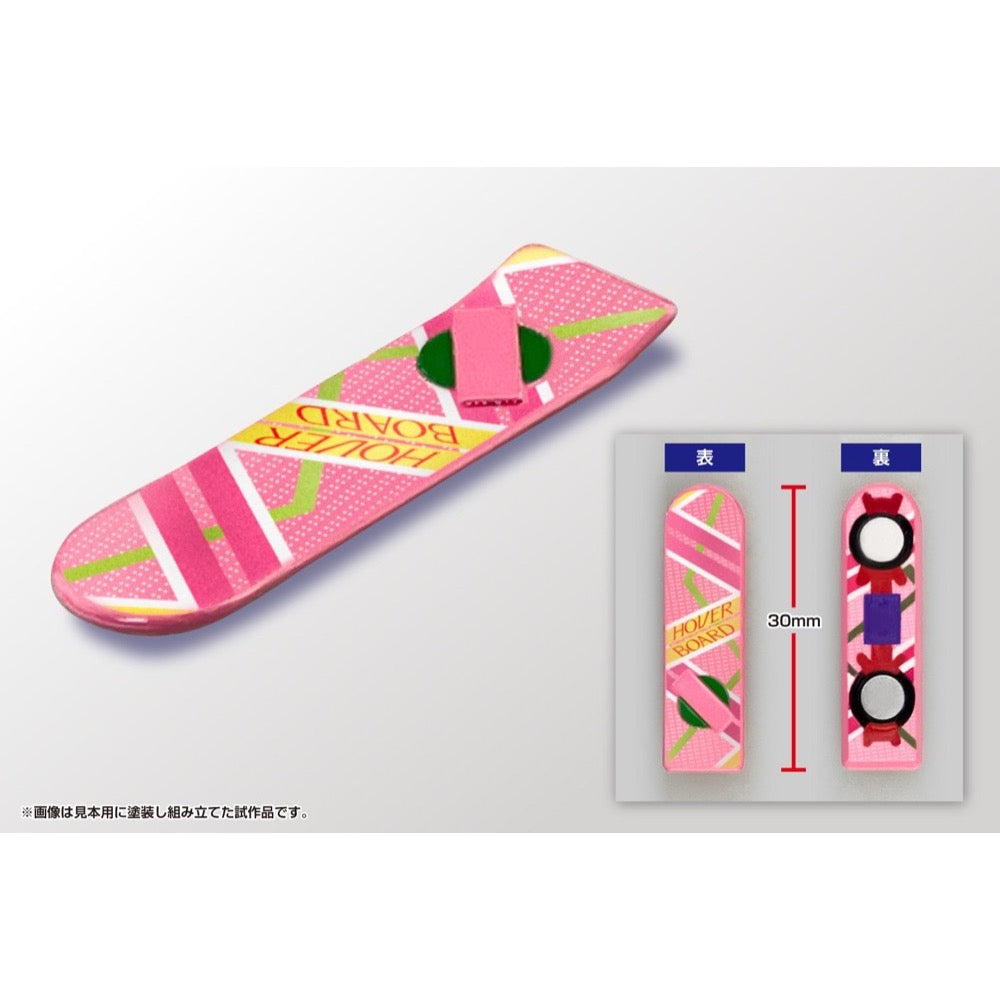 This kit builds into the time machine's flying form; many newly molded parts have been added! It's equipped with the "Mr. Fusion" domestic nuclear reactor, and its distinctive gull-wing doors can be opened and closed after completion. A hoverboard in the same scale is included, and a display stand is also included.