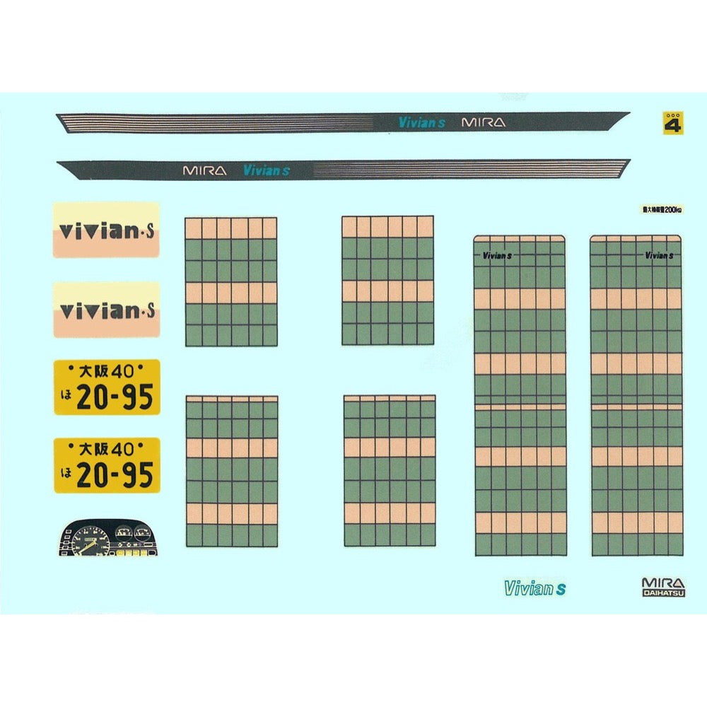 • The decals include license plates, logos, body stripes, and patterns for the fabric seats.