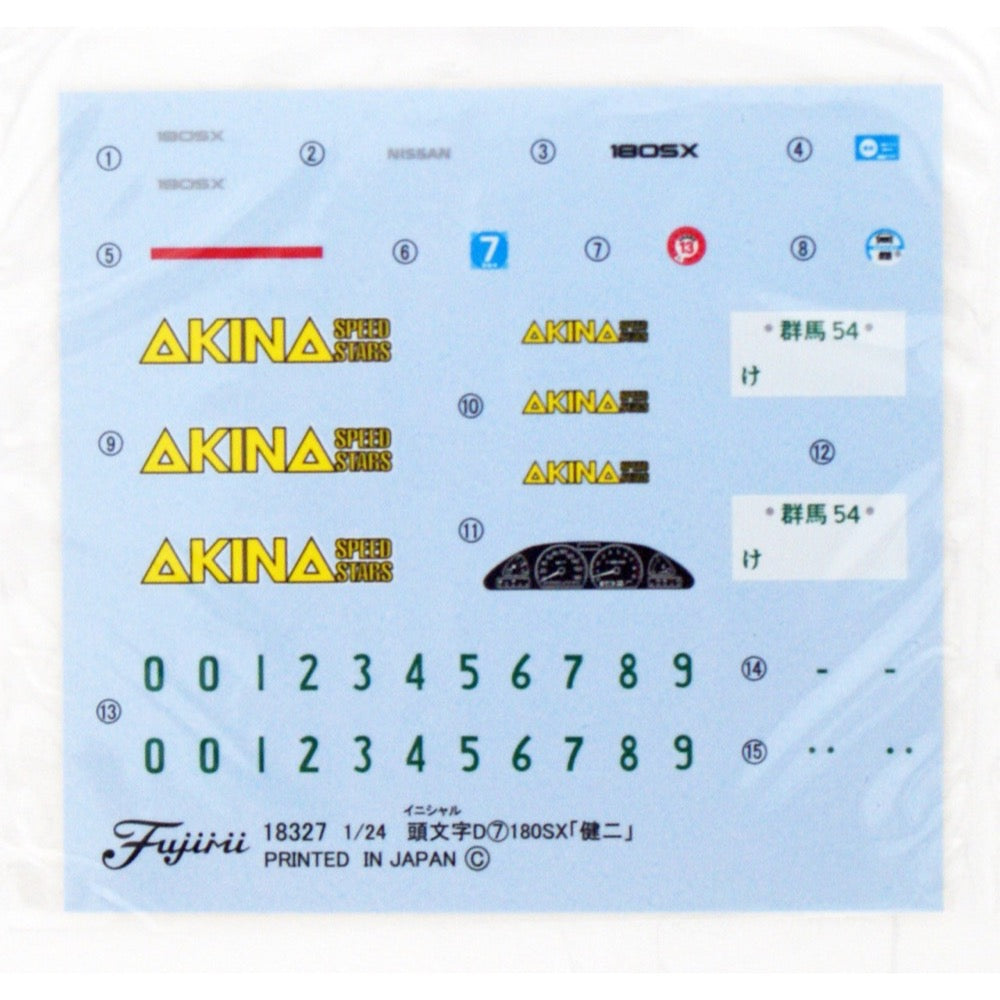 This kit lets you build Kenji's favored RPS13 180SX from "Initial D," complete with two kinds of doors, plated E Wing III wheels, steerable front wheels, one-piece molded bathtub type interior for easy assembly, and a metal pipe for the sports muffler.