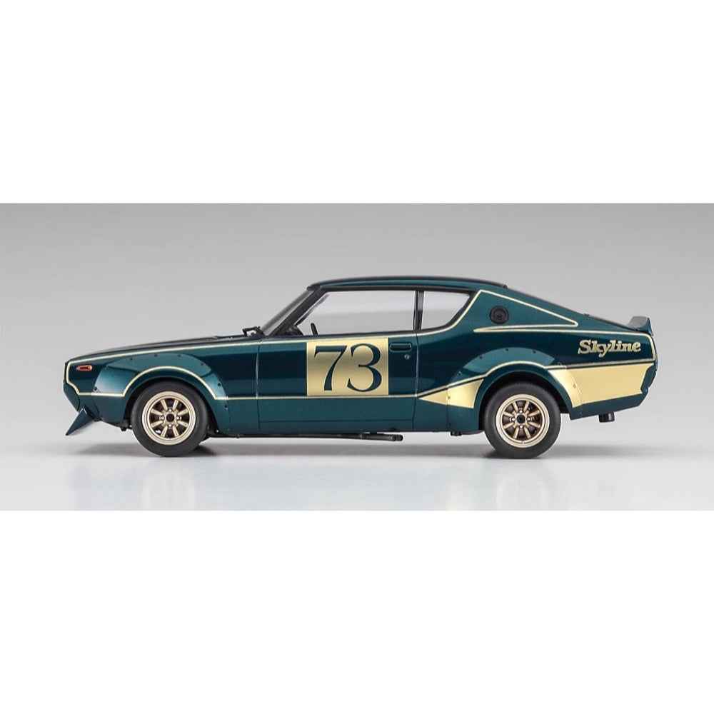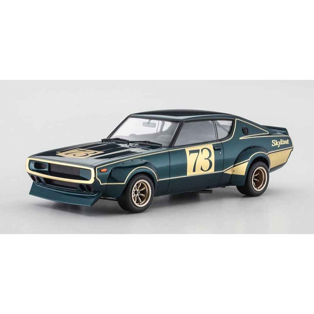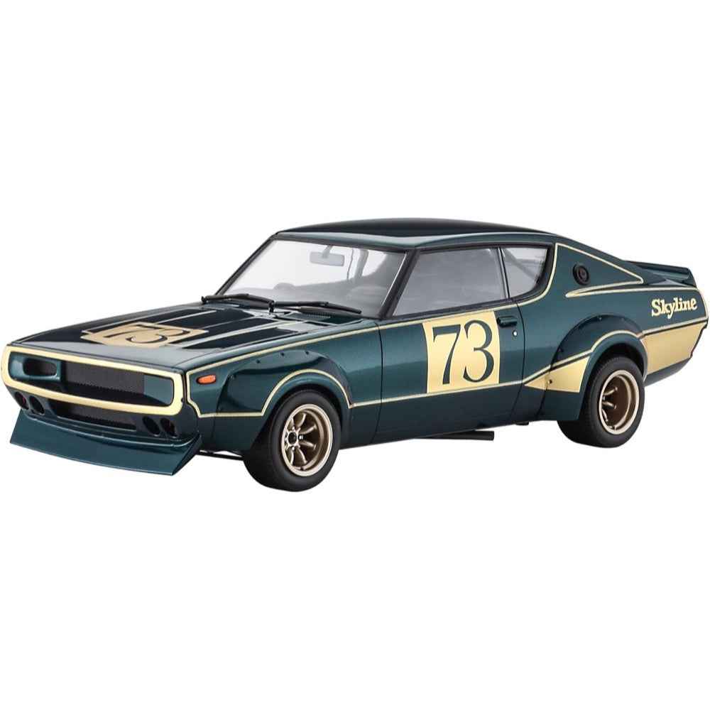 This Nissan Skylight 2000GT-R (KPGC110) racing concept car was exhibited at the 1972 Tokyo Motor Show and made a big impression on all who attended! This limited-edition 1/24-scale model kit from Hasegawa reproduces the Kenmeri racing concept; a metal inlet is included, as are additional plastic parts for the front grille, front spoiler, front blinker, rear panel, over fender, exhaust pipe, wheels, rubber tires, handles, meter panel and roll bar; bonus parts from its full restoration in 2007 (driver's seat and large rearview mirror) are also included, as are new decals.