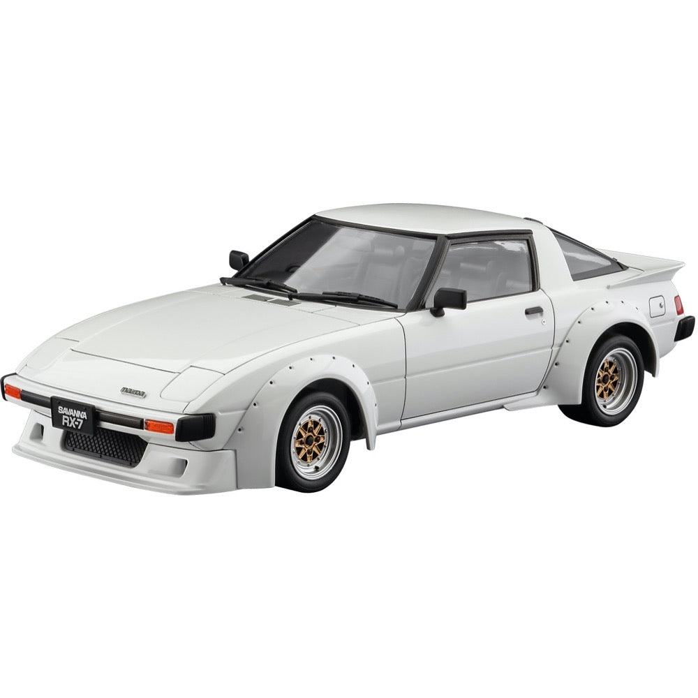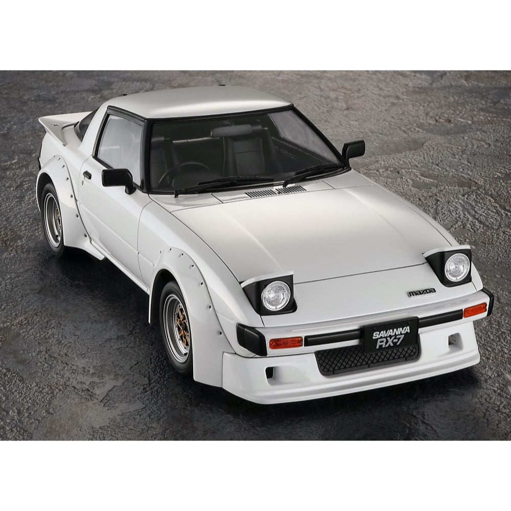 Hasegawa's newest 1/24-scale model kit of the Mazda Savanna RX-7 is customized with over fenders and front and rear spoilers! Window painting stickers are included.