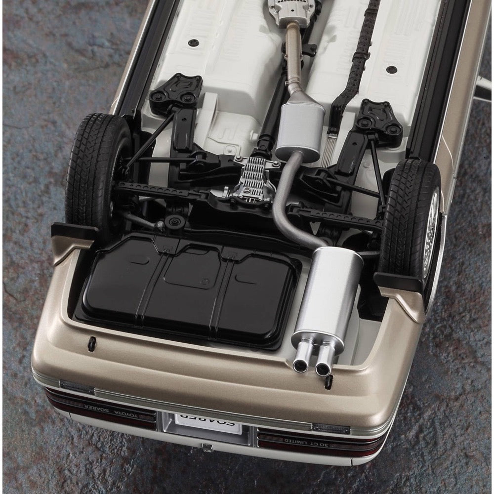 The Super Gran Turismo second-generation Soarer (Z20) is now available as a 1/24-scale model kit from Hasegawa! Based on thorough research into the actual vehicle, the late-model air suspension specification is recreated with completely new molds! The second-generation Soarer (Z20) debuted in January 1986. Its catchphrases were "Super Gran Turismo" and "One in the World, a Soarer in Japan." Its cutting-edge driving performance, elegant and refined styling, and interior made with carefully selected high-quality materials made it a huge hit. This model kit recreates the air suspension specification of the flagship, top-of-the-line 3.0GT-Limited late model (1989) version with all-new molds. You can choose between standard or low-down custom ride height. The protection moldings on the body sides and front and rear bumpers are recreated with clear parts, just like the actual vehicle. The headlight and taillight mirrors, fender arch moldings, and door handles are plated, and window painting stickers are included.