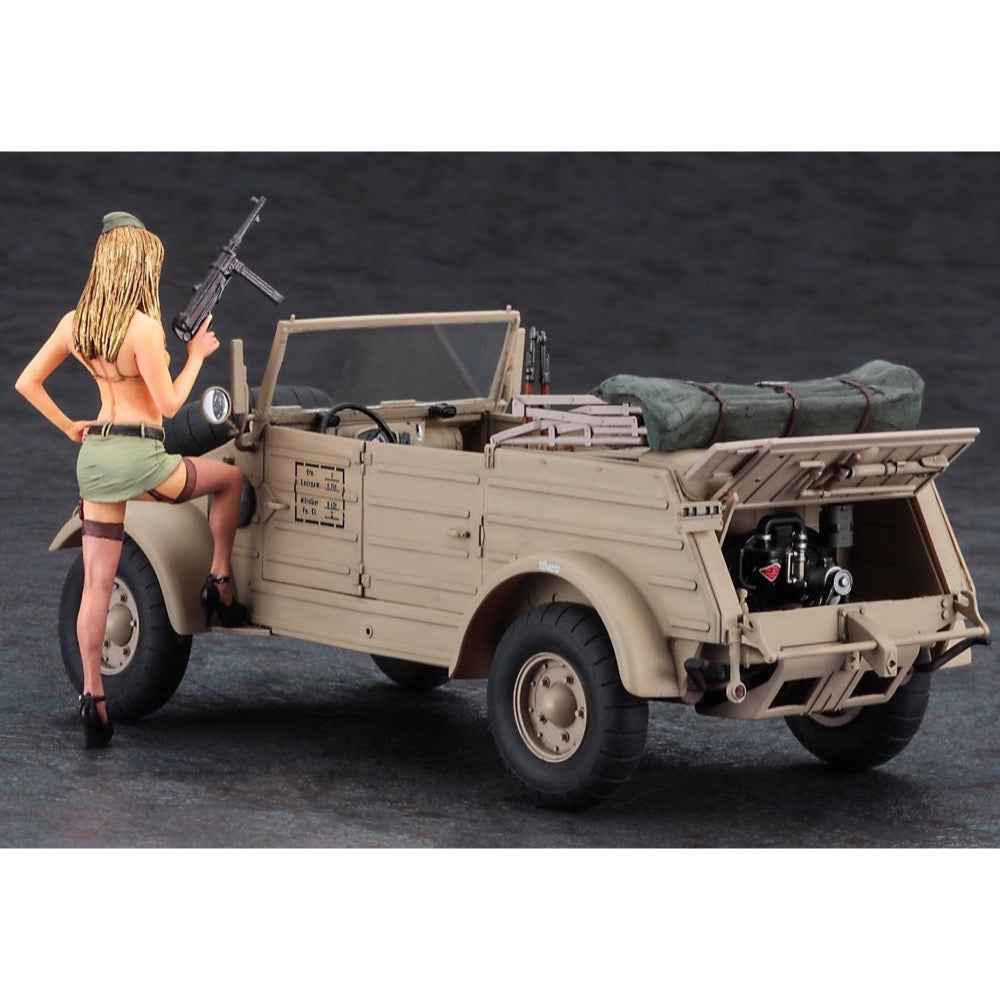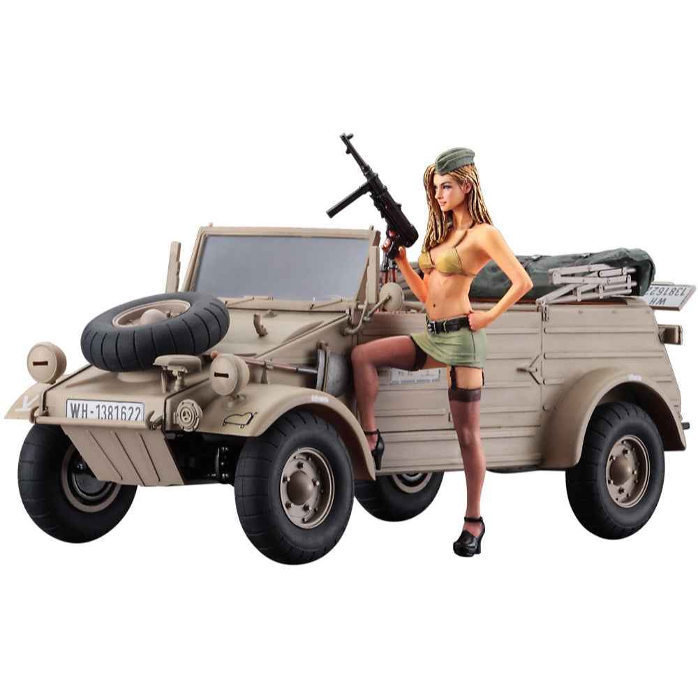 This 1/24-scale kit of a Pkw.K1 Kubelwagen Type 82 with balloon tires comes with a sexy blonde girl resin figure! It includes decals for one version: the 999th African Light Division, 999th Armored Reconnaissance Battalion, Armored Car Company, German Army WH-138622, seen in Greece in 1943