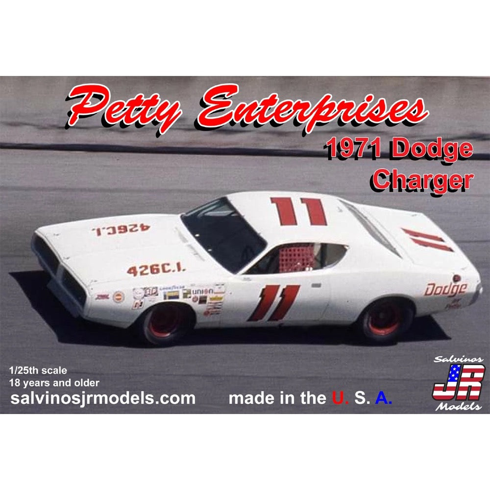Salvinos JR Models 1/24 Petty Enterprises 1971 Dodge Charger Flathood Model Kit.