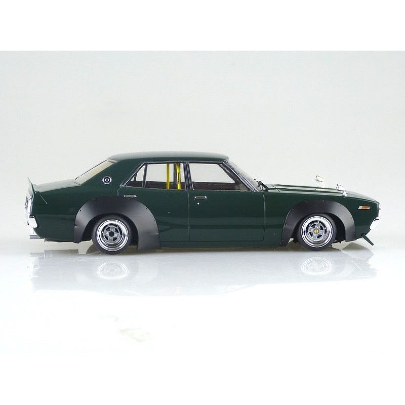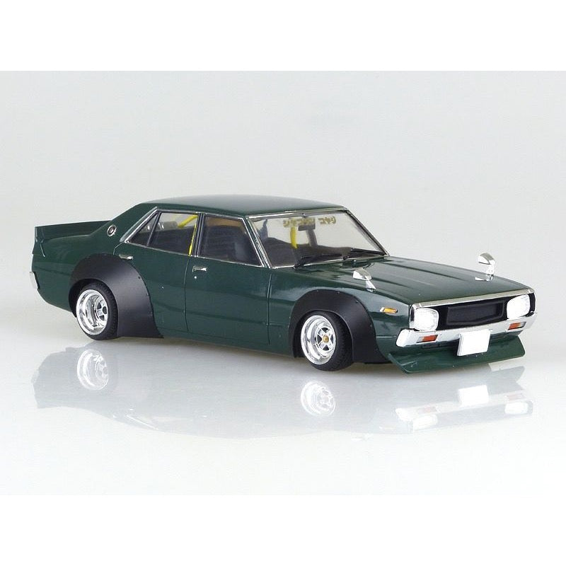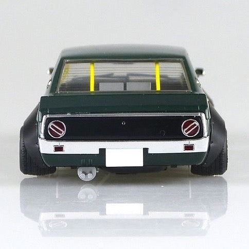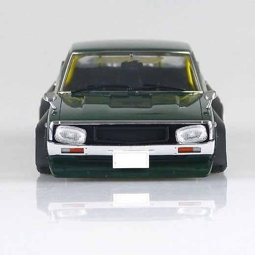 The new parts of Ken & Mary 4 Door are 3-split wings that are the perfect size for one tail. In addition, square hanging eyes, Laurel grill, one tail, cherry tail, chin spoiler, works fender, competition han, Datsun bucket, wheels are 14 inch Mk-II and LB racing tires are attached.