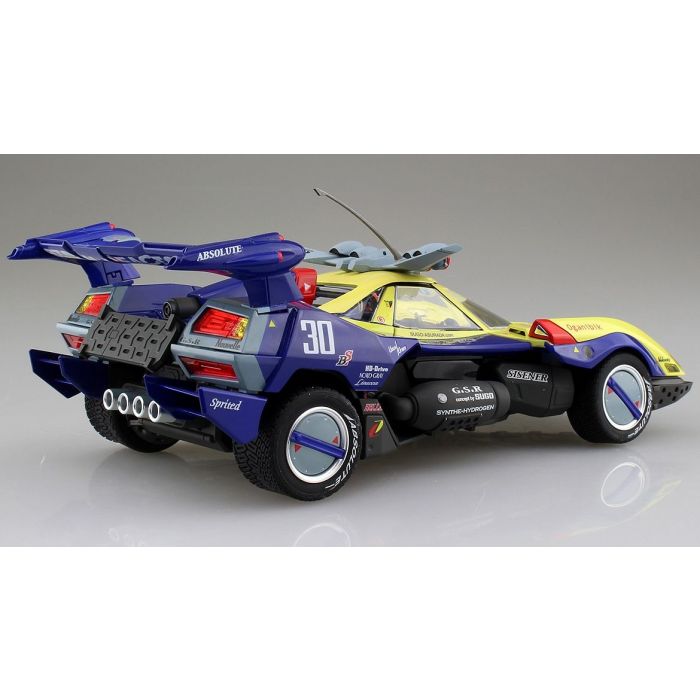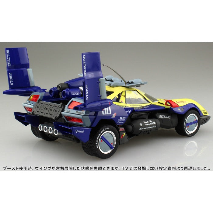Aoshima presents a 1/24 scale kit of the Rally Mode Sugo Asurada G.S.X from "Future GPX Cyper Formula!" This kit features gimmicks to allow the wing to open, as well as the doors. Specialized Rally Mode-specific parts are included for the tires, chassis, and more.