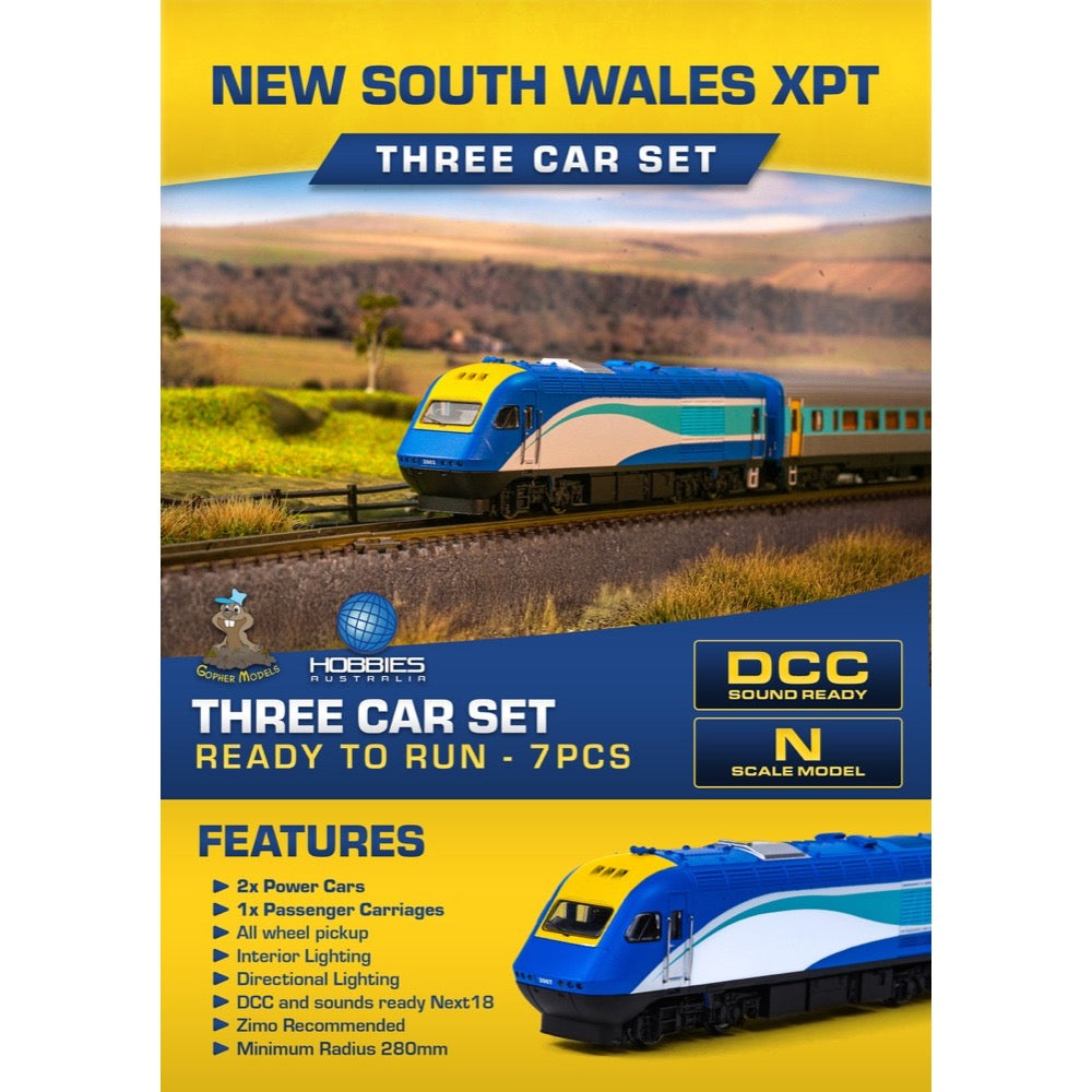 Gopher Models N Scale New South Wales XPT 3pc Set Trainlink Blue No Logo Livery
