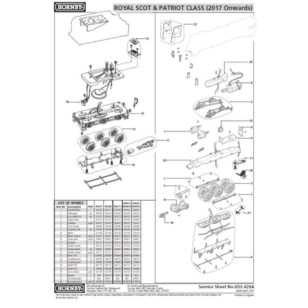 This model of BR ‘Patriot’ Class 4-6-0 No. 45540 ‘Sir Robert Turnbull’ is presented in its post-rebuild condition, reflecting its appearance under British Railways ownership. DCC ready with a 21-pin decoder socket, the locomotive is designed with metal sprung buffers and NEM tension lock couplers.