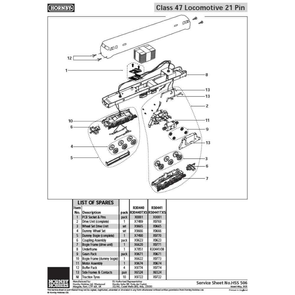 • 1x Model Diesel Locomotive, 1x Accessory Pack (includes etched nameplates), 1x Instructions