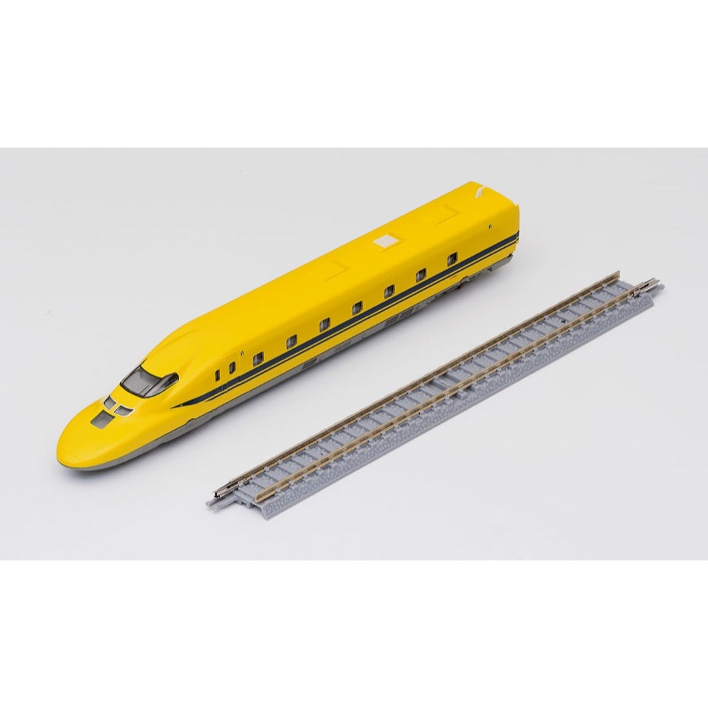 The 923-type T4 train was introduced in 2000 as an inspection vehicle belonging to JR Central. Its appearance is based on the 700-series, and it has a yellow body with a blue stripe, earning it the nickname "Doctor Yellow."