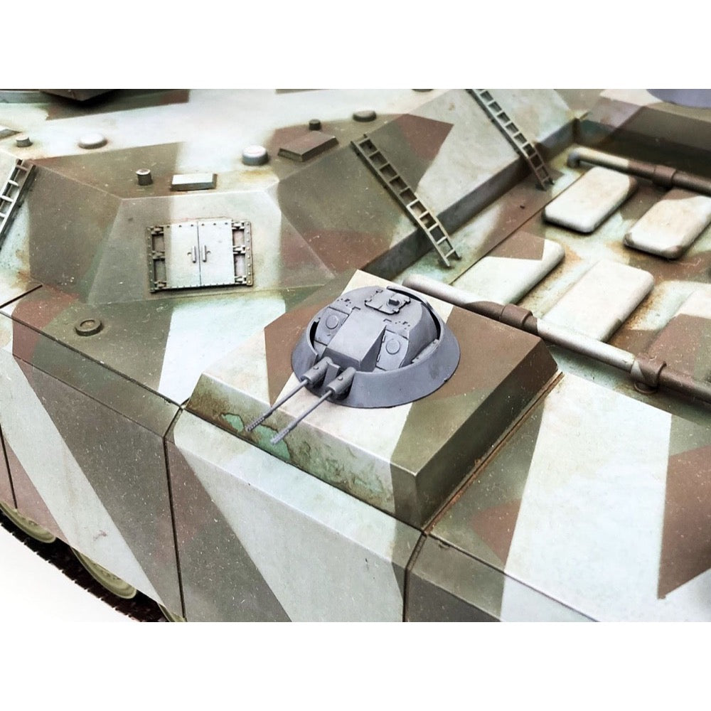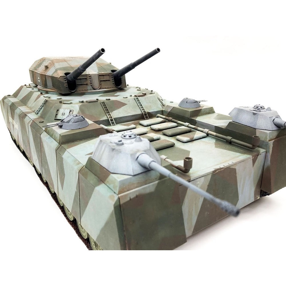 • Two 150mm tank guns, mounted in separate tank turrets, enhancing its close and mid-range firepower.