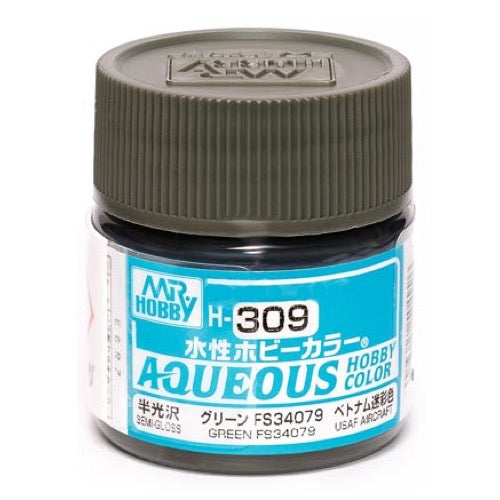 Mr Hobby (Gunze) H309 Aqueous Semi-Gloss Green FS34079 Acrylic Paint 10ml