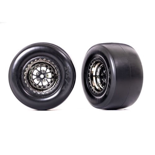 Traxxas 9477X Rear Mickey Thompson ET Drag Slicks Smoke Compound Tyres and Weld Black Chrome Wheels with Foam Inserts Assembled and Glued 2pc