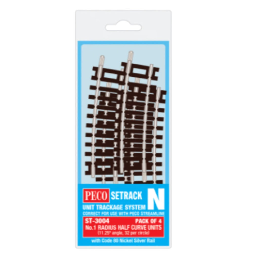 Peco ST3004 N Setrack Half Curve 1st Radius (Pack of 4)