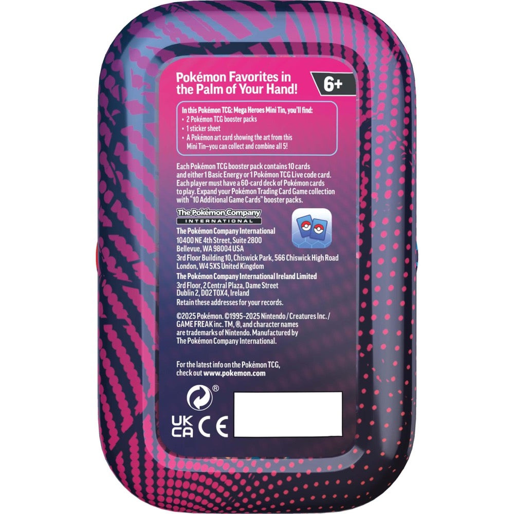 In this Pokémon TCG: Mega Heroes Mini Tin, you’ll find: