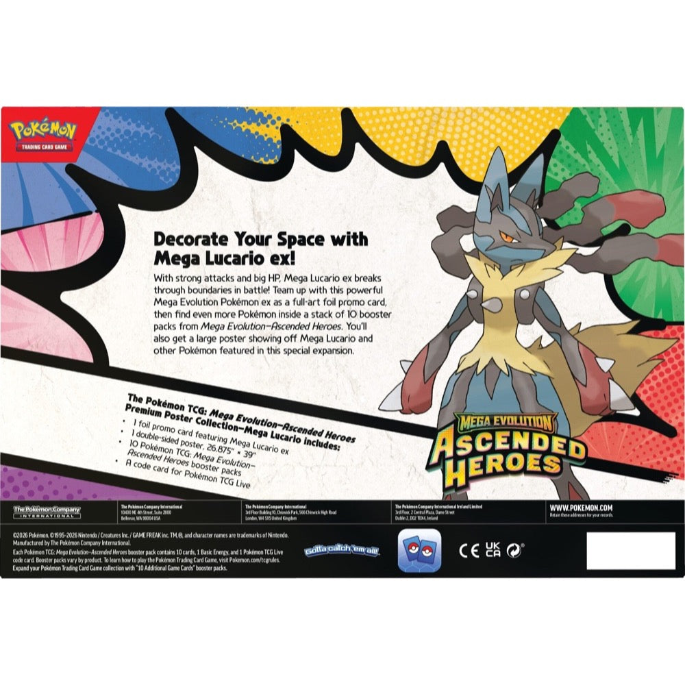 Each Pokémon TCG: Mega Evolution—Ascended Heroes Premium Poster Collection—Mega Lucario or Mega Gardevoir includes: