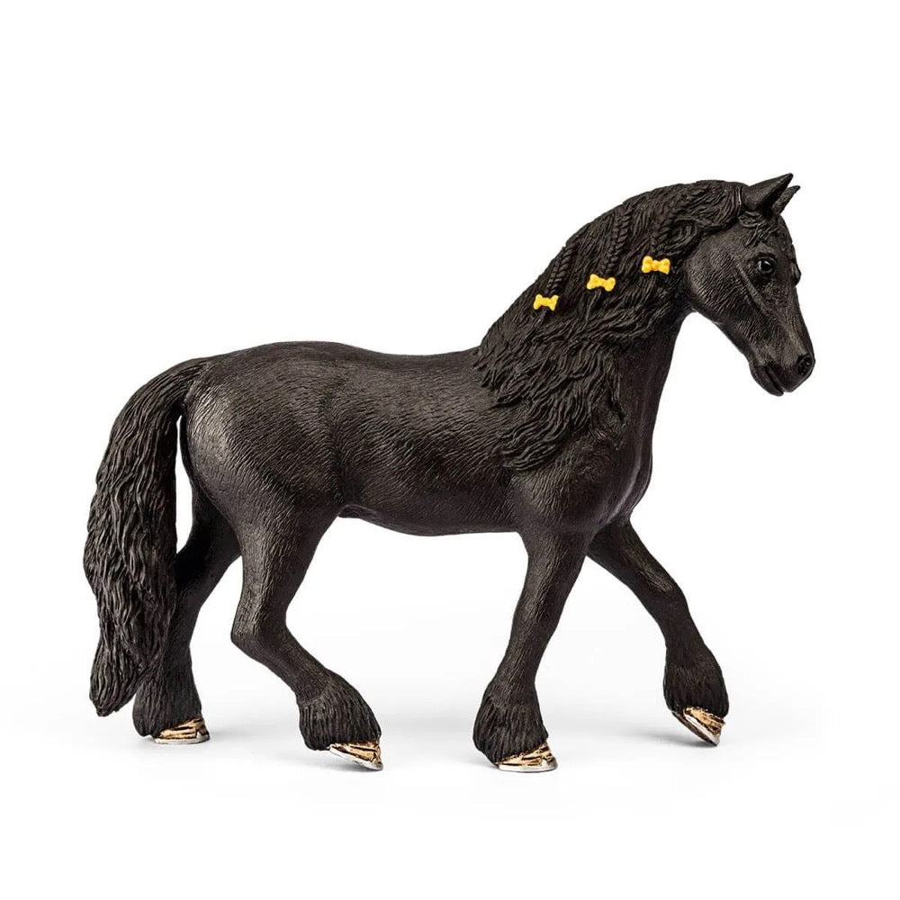 • 1x horse box, 1x girl, 1x Frisian mare, 1x chihuahua, 1x saddle, 1x bridle and reins, 1x hay rack, 1x trough, 1x carrot, 1x trophy, 1x gold medal, 2x prize ribbons, 1x helmet, 1x sticker sheet, 1x assembly instructions