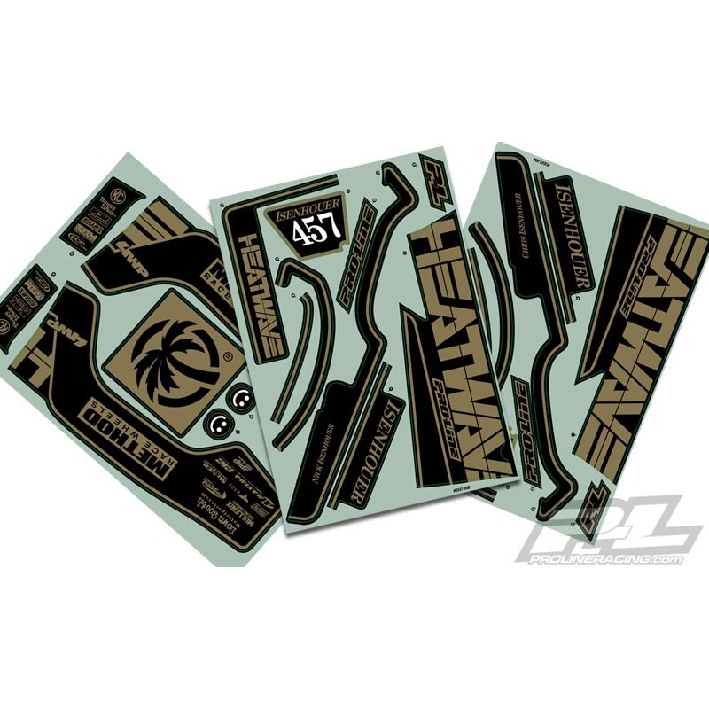 This is a 1967 Ford® F-100 Race Truck Heatwave® Edition (Black) Body for the Unlimited Desert Racer®. Now you can build a fully licensed replica of the popular full-size Heatwave® Trophy Truck driven by Chris Isenhouer! Chris races his iconic Black and Gold Heatwave® Ford® F-100 converted to Trophy Truck specs in the unrelenting desert along with his brother Nick. Pro-Line is proud to bring Chris’ truck to life for your Traxxas® UDR® made from Pre-Painted and Pre-Cut Black Polycarbonate. The massive Black and Gold Heatwave® decal wrap is also included and pre-cut for easy installation. The body features the iconic flat front F-100 grill and wide fender flares to represent the aggressive fiberglass bulges found on Chris's full-size race truck. Pro-Line's 1967 F-100 Heatwave® Edition body mounts directly to the cage on the UDR® in the same locations as the stock body, so all you need to do is remove the outer film, place the wrap following the included instructions, and install the body just like you would the stock body. Transform the look of your Unlimited Desert Racer® and add even more scale realism with the fully licensed 1967 Ford® F-100 Race Truck Heatwave® Edition Body from Pro-Line!