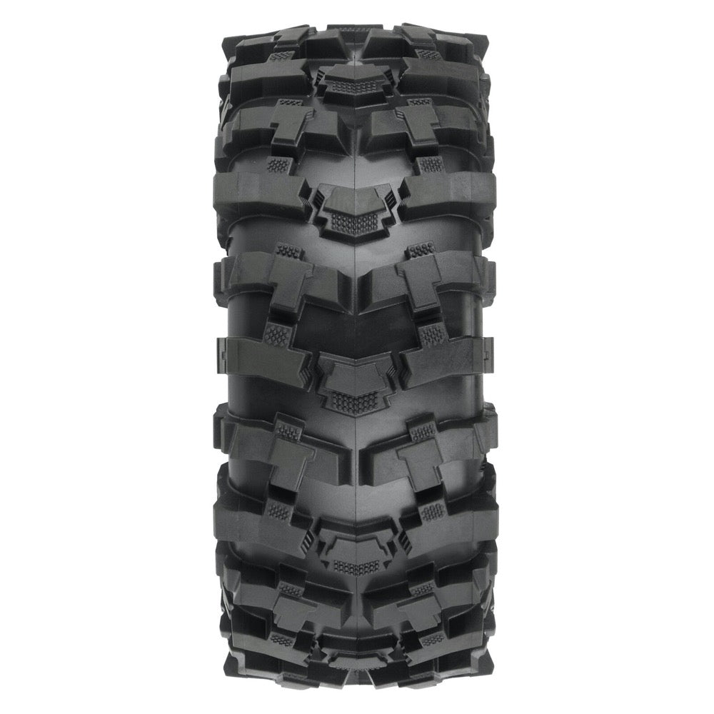 Coming in at a massive 4.85" tall x 2" wide, this is one of the largest 1.9" tires Pro-Line has ever made! Molded in our legendary G8 compound, all the details of this gnarly tire are captured in perfect 1/10 scale detail: from the Tread Biter™ cleats for added traction to the Mud Scoops for added cleaning power, to the Massive Sidebiters® and angled shoulder scallops for ultimate side grip. The symmetric directional tread pattern provides excellent traction and cleaning power as well.