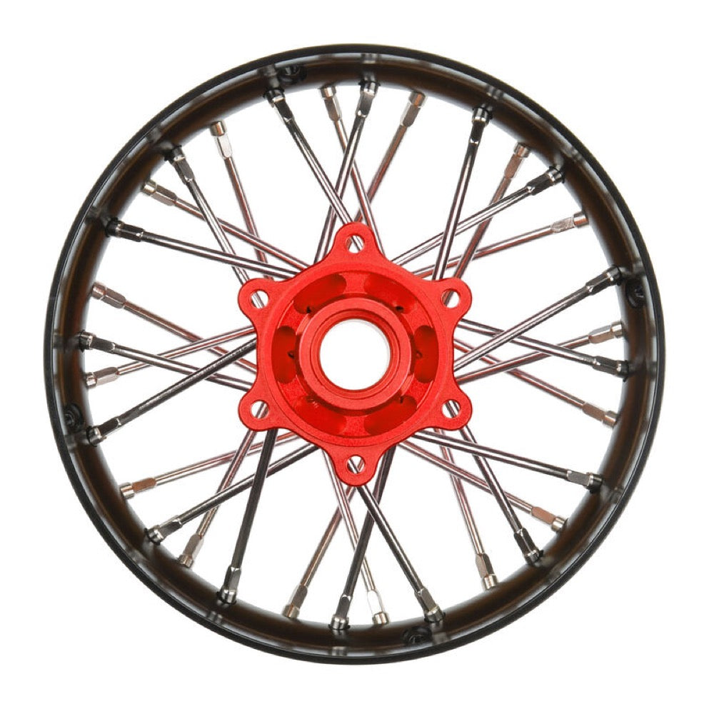 This is a Pre-Assembled Pro-Spec V2 Bead Aluminum Rear Wheel for Losi® Promoto-SM. Pro-Line is taking supermoto realism to the next level with this Pro-Spec anodized billet aluminum spoke wheel. Engineered for enthusiasts, this wheel is designed to perform in extreme environments while taking a beating.