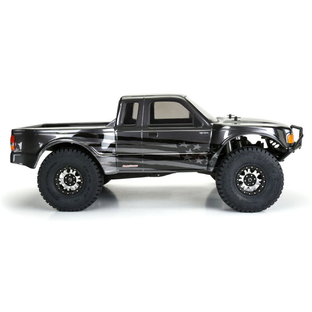 This is a 1993 Ford® Ranger Pre-Runner Clear Body for 12.3” Crawlers. Transform your crawler into a Desert Pre-Runner! This body has aggressive fender bulges built in to create the tough off-road look. With the larger fenders this gives you the option to run longer travel and larger tires.