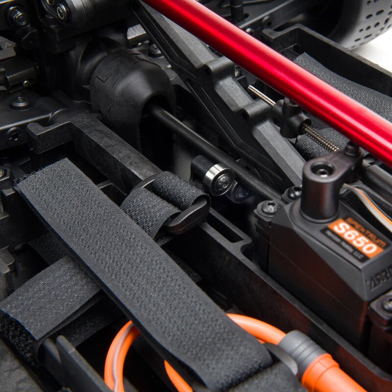 Another feature new to the INFRACTION™ 6S BLX 4WD is a handbrake. The chassis includes a module for a rear vented disc brake and a powerful Spektrum® SPMS650 brake servo. You control the handbrake from a convenient switch on the DX3™ transmitter for thrilling drifting, "hooning" and stunt action.